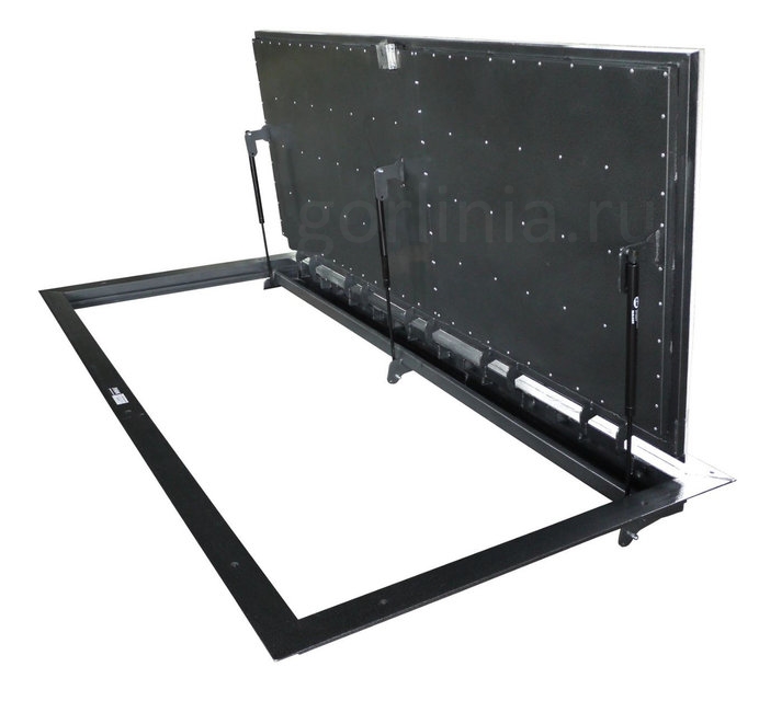 Створка обшита плитой ГВЛВ в уровень с полкой наличника рамы, все элементы фурнитуры скрыты внутри: верхняя лицевая часть подготовлена под финишной отделку плиткой/ламинатом с отступами и зазорами по схеме завода-изготовителя.